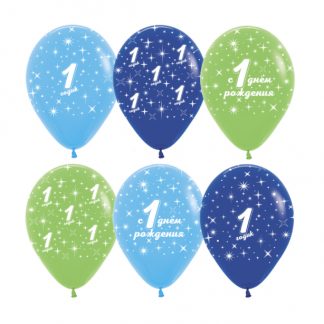 Шары «1 годик» сине-зелёный асс. 30 см